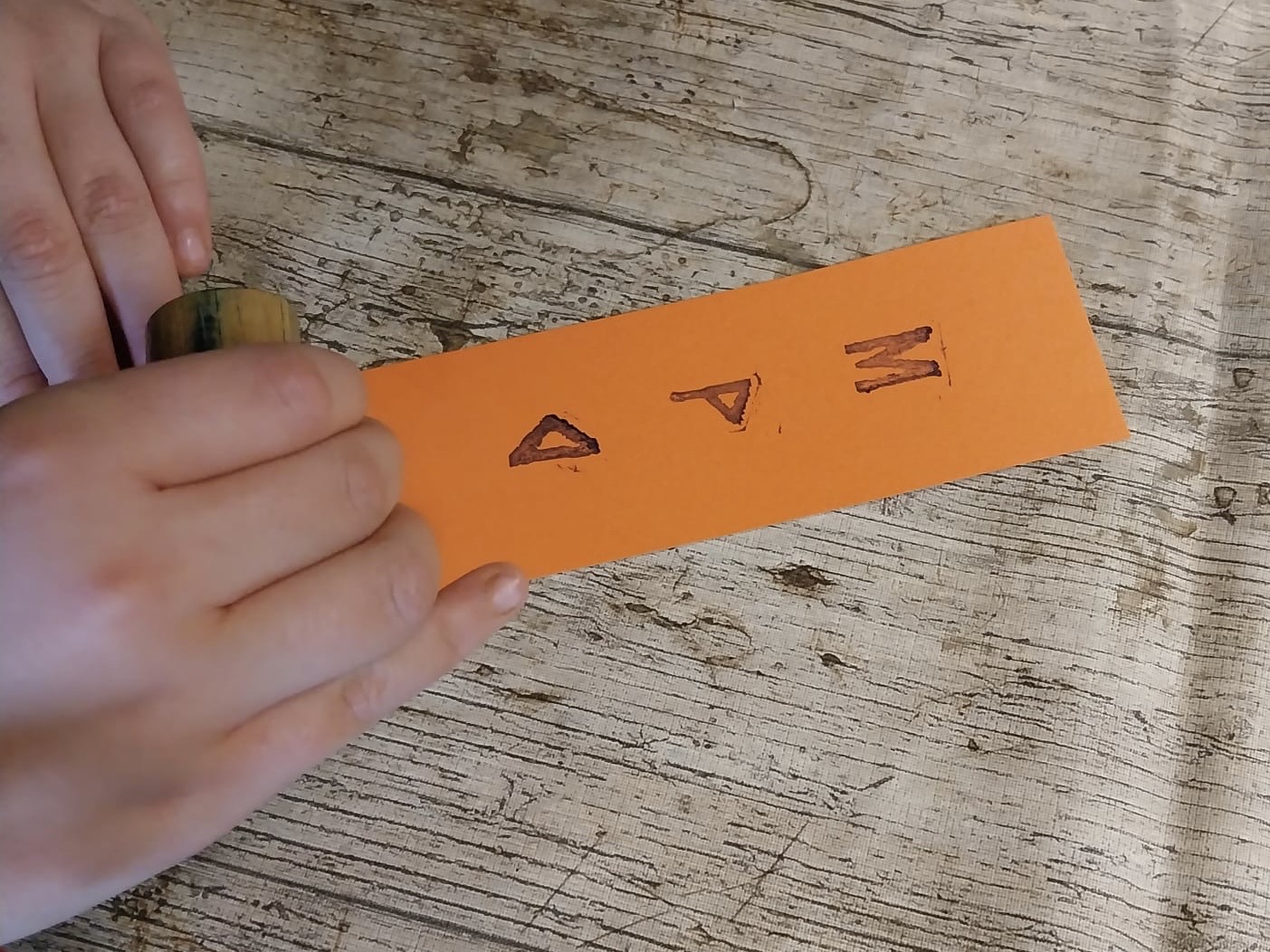 Estampació del nom amb l’alfabet ibèric (punt de llibre)
